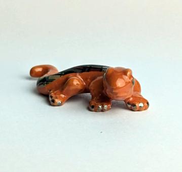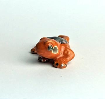 Sie wollen etwas Auffälliges und Freches in Ihrer Sammlung haben? Dann ist unser orangefarbener Gekko mit dem rechteckigen Muster aus den Farben Schwarz, Rosa, Violett und Dunkelrot genau das Richtige für Sie! Handbemalt und mit einer Größe von nur 2 cm, ist er der Hingucker in jedem Raum.