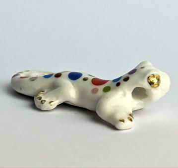 Suchen Sie nach etwas wirklich Extravagantem für Ihre Sammlung? Dann ist unser dicker dunkelrosa Gekko mit goldenen Augen und einem goldenen Schwanz genau das Richtige für Sie! Handbemalt und mit einer Größe von nur 2 cm, ist er der Hingucker in jedem Raum.